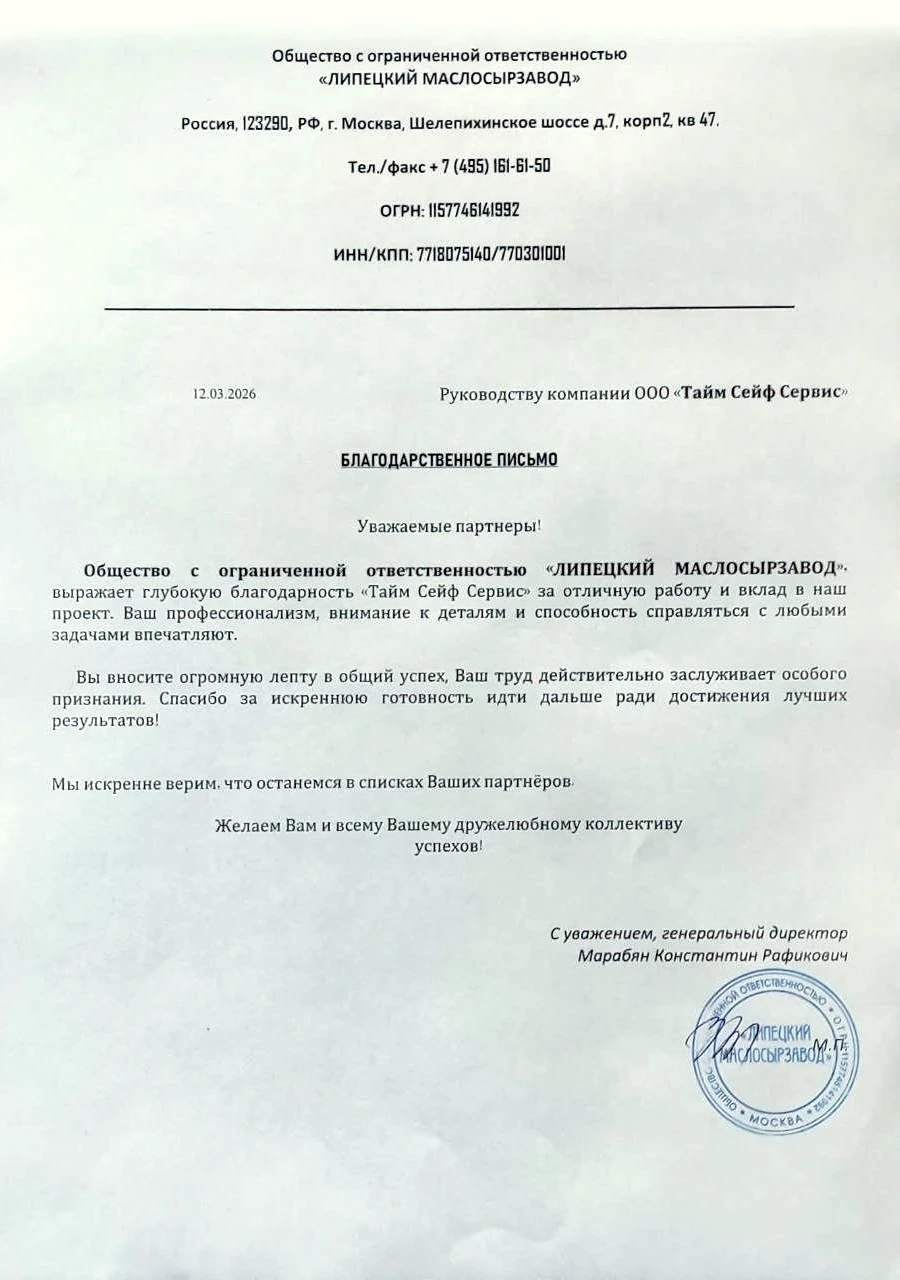 Закажите коммерческое предложение от Тайм Сейф Сервис: